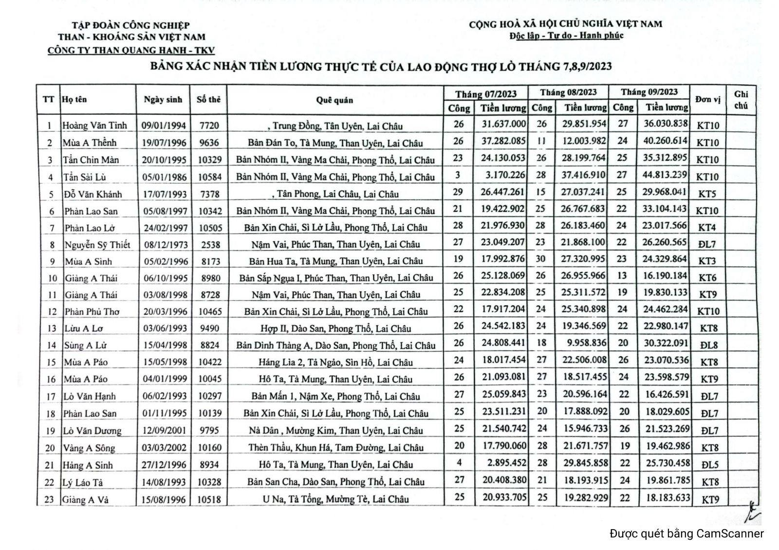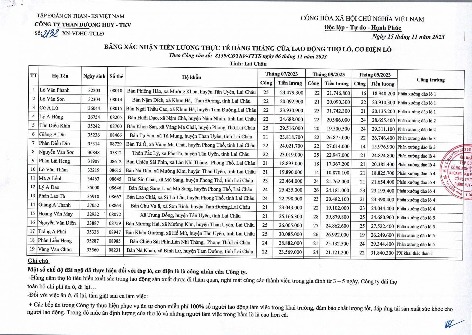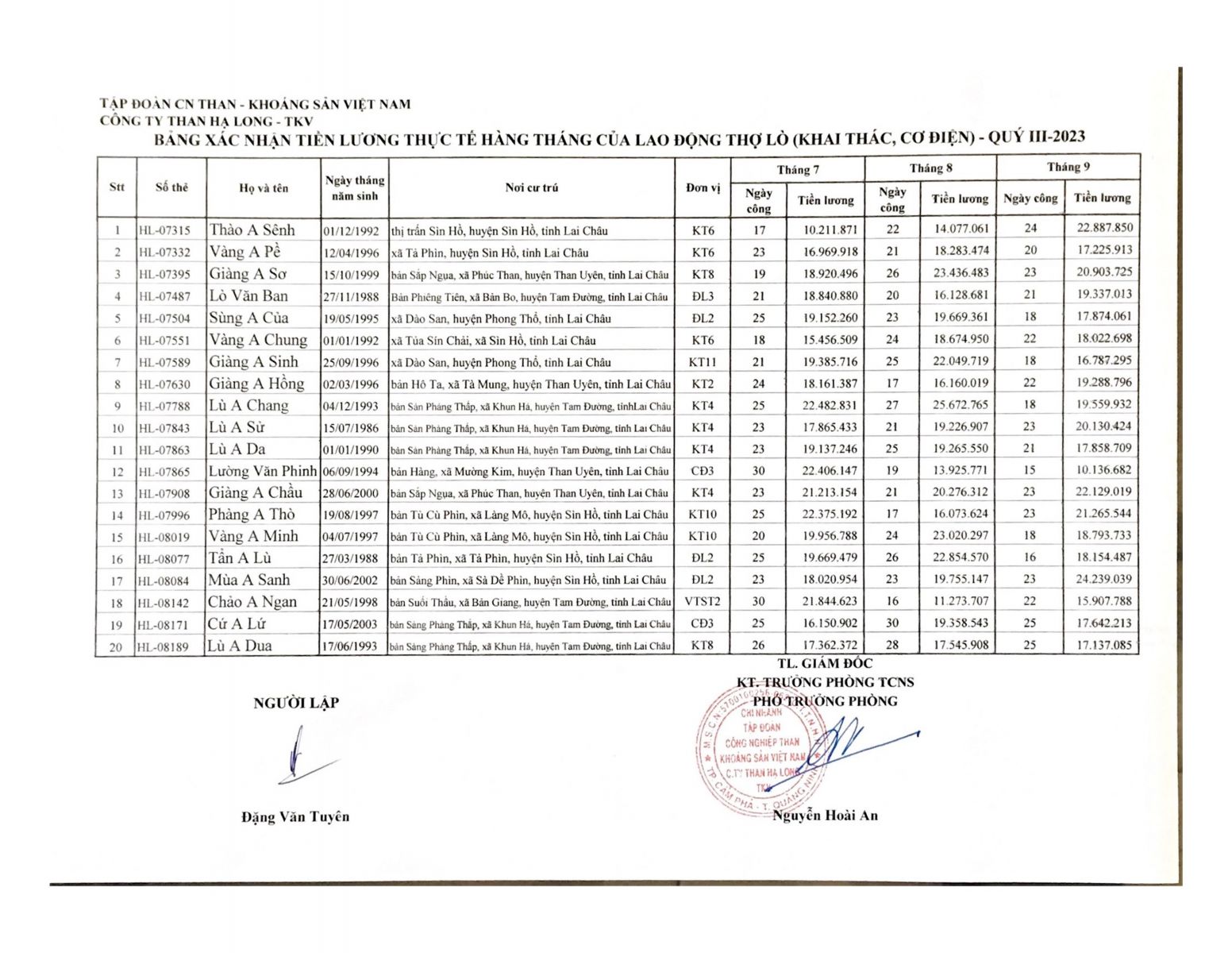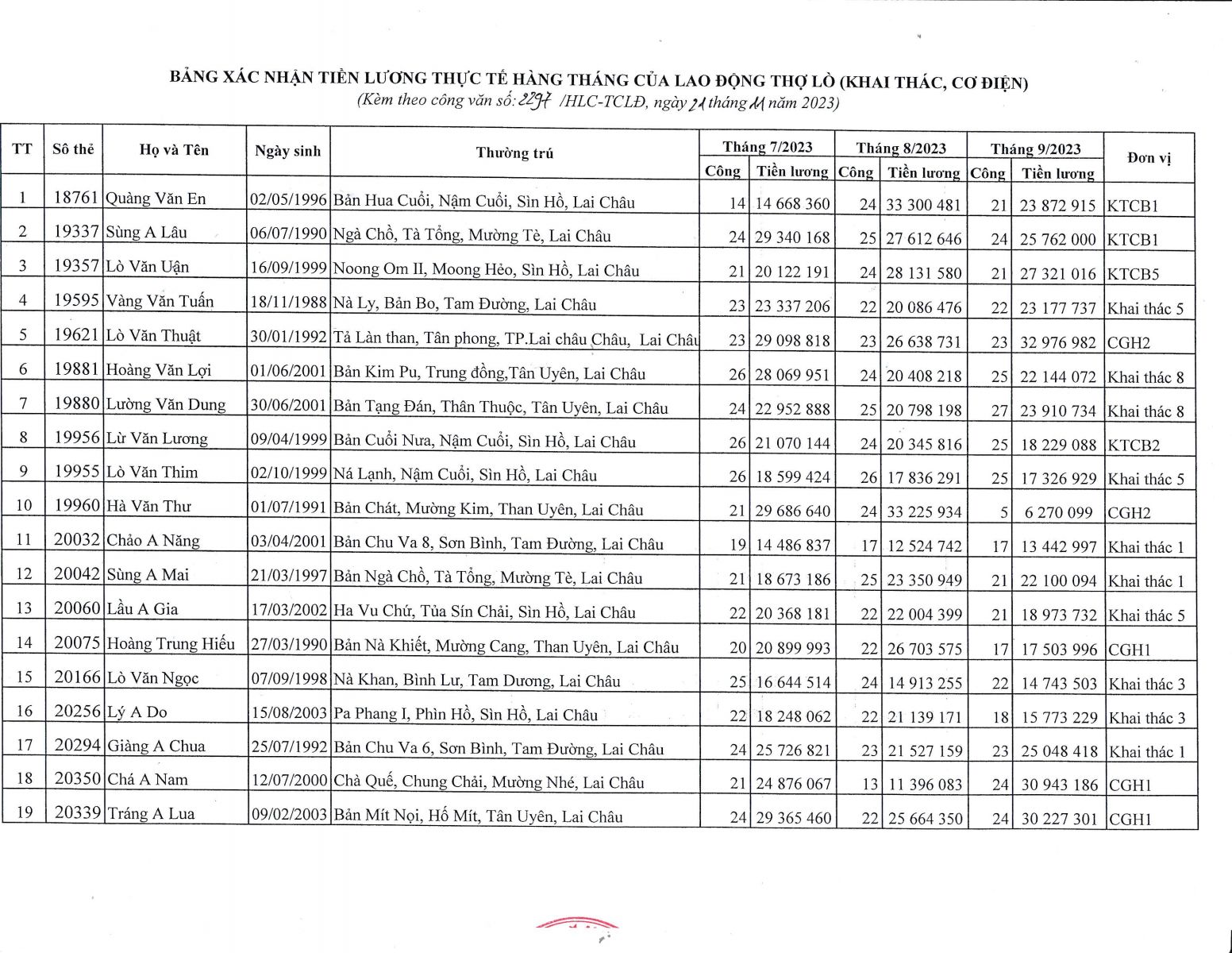Bảng Lương Công nhân tỉnh Lai Châu Quý 3 - 2023
